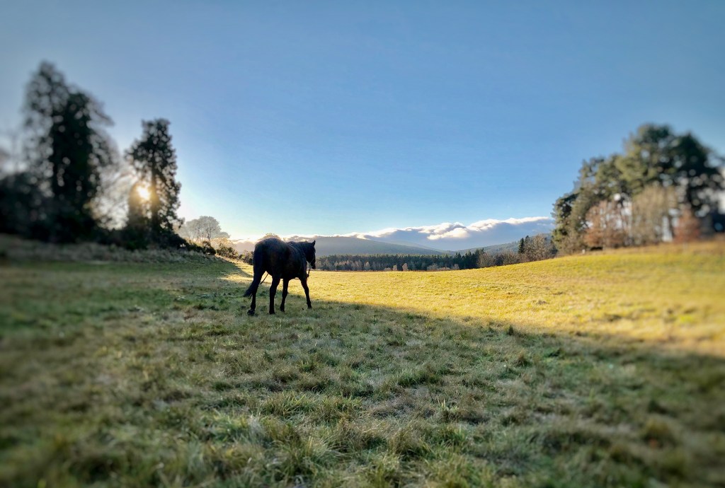 The sun comes out and shines down on Scotland as if it has never been away. My two morning clients cancel, so instead of staring into the Zoom I go down to the field. All the mares are in a trance of profound pleasure as they feel the warmth on their backs for the first time in days.